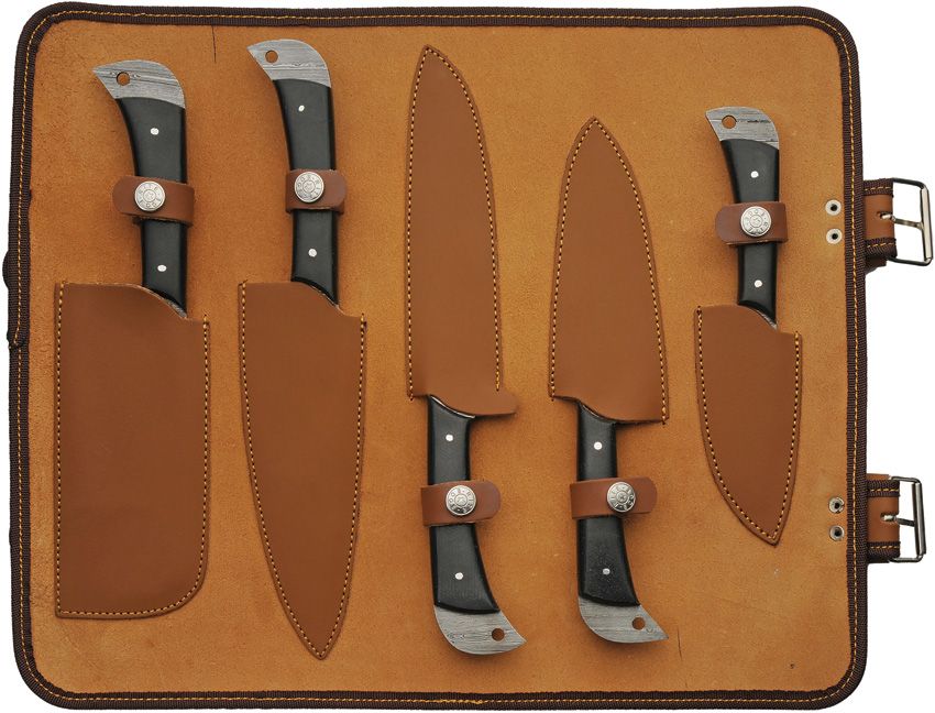 Damast Küchenmesser-Set mit Rolle