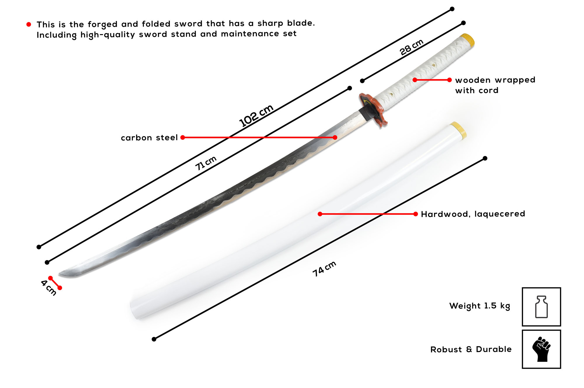 Demon Slayer: Kimetsu no Yaiba - Rengoku Kyoujurou Schwert - handgeschmiedet und gefaltet, Set
