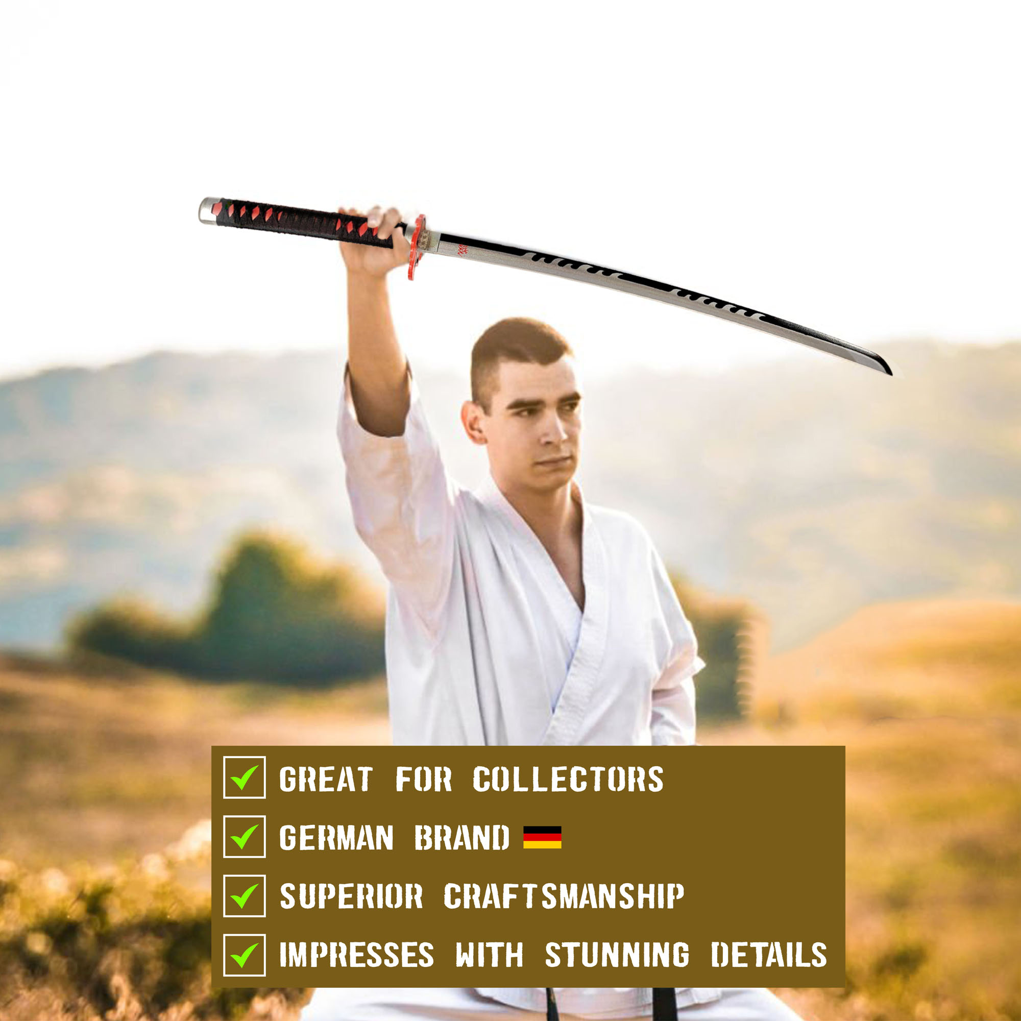 Demon Slayer - Tanjiro Kamado Schwert v2 - Fire Breath aus Holz mit Scheide