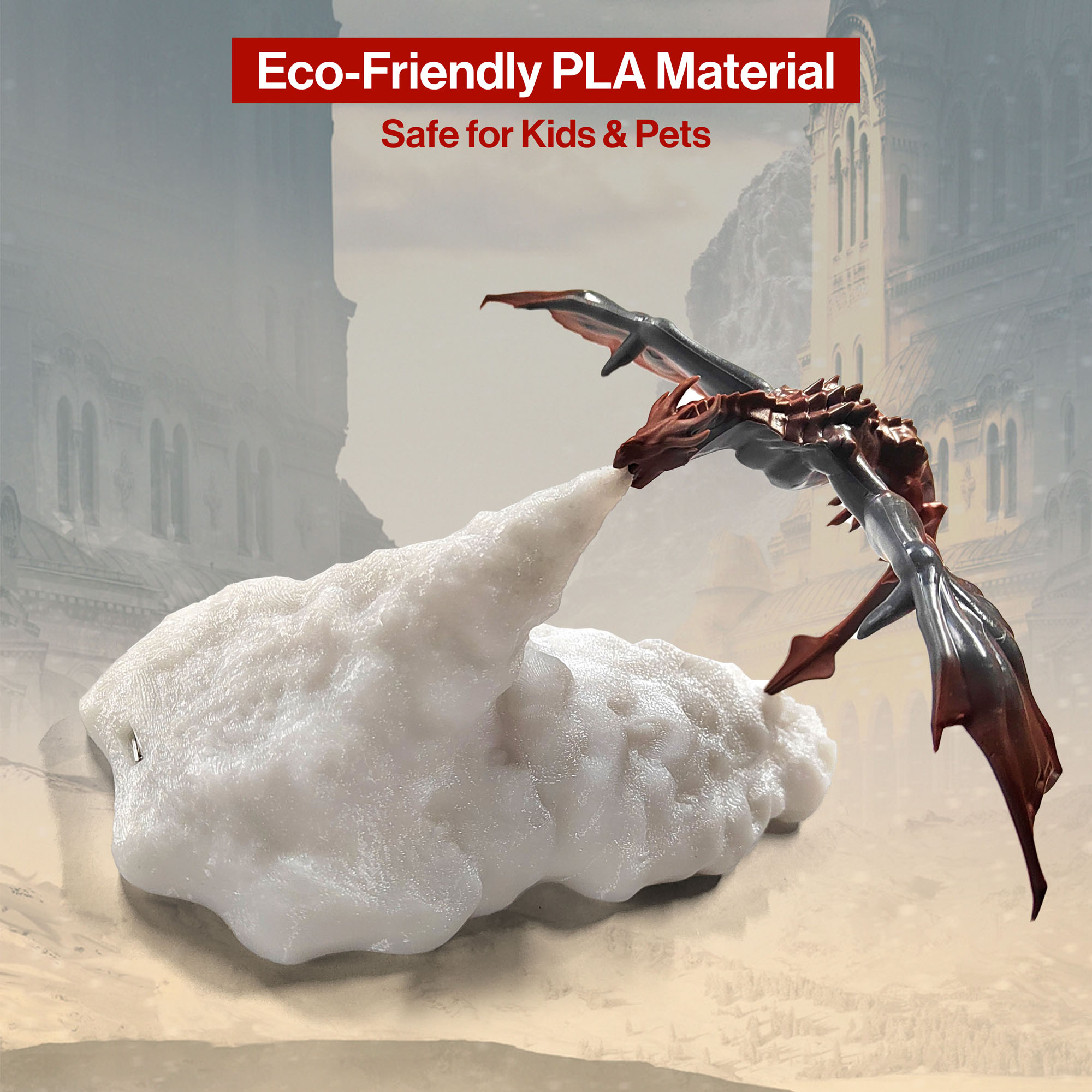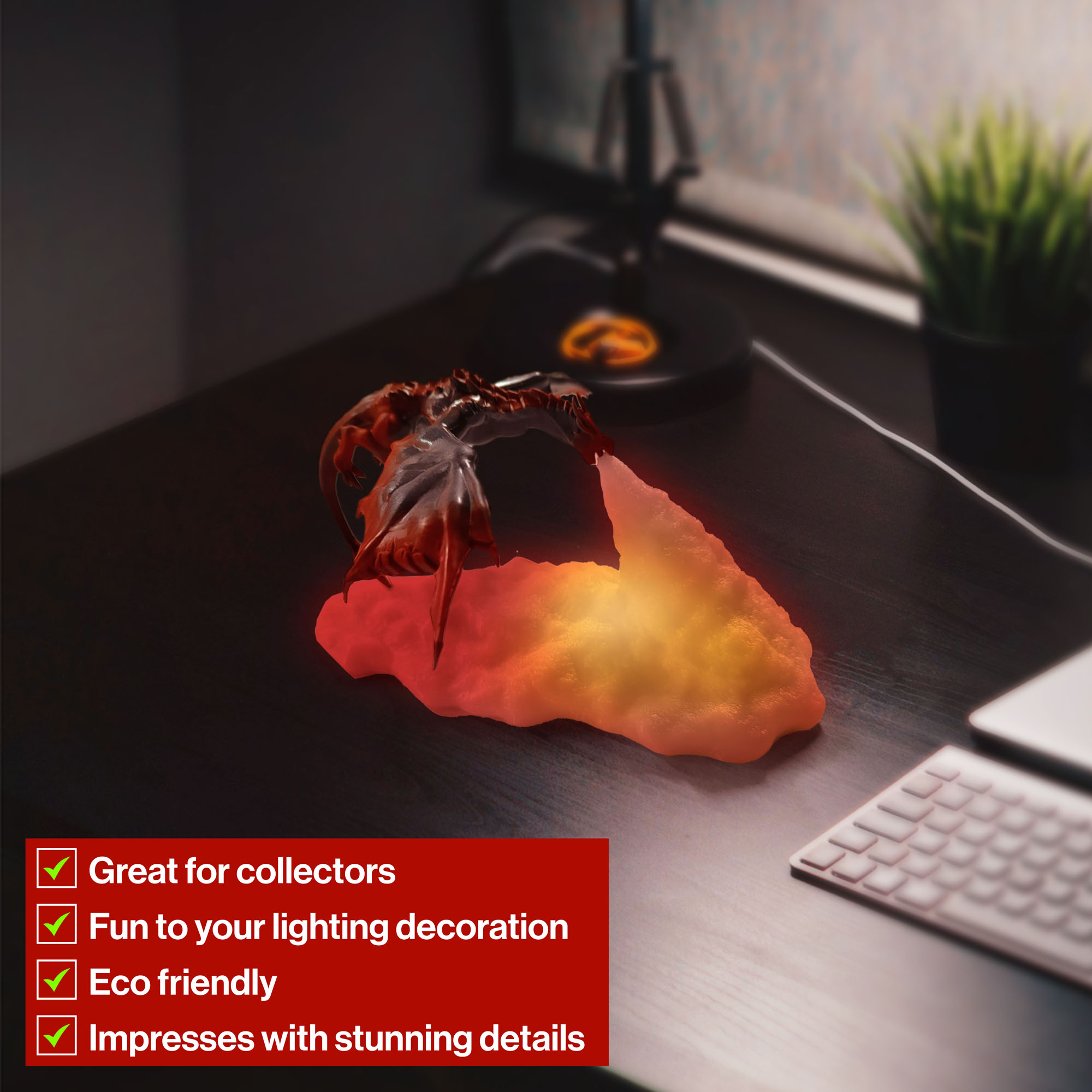 Drachenlampe aus 3D-Drucktechnik, feuerspeiender Drache
