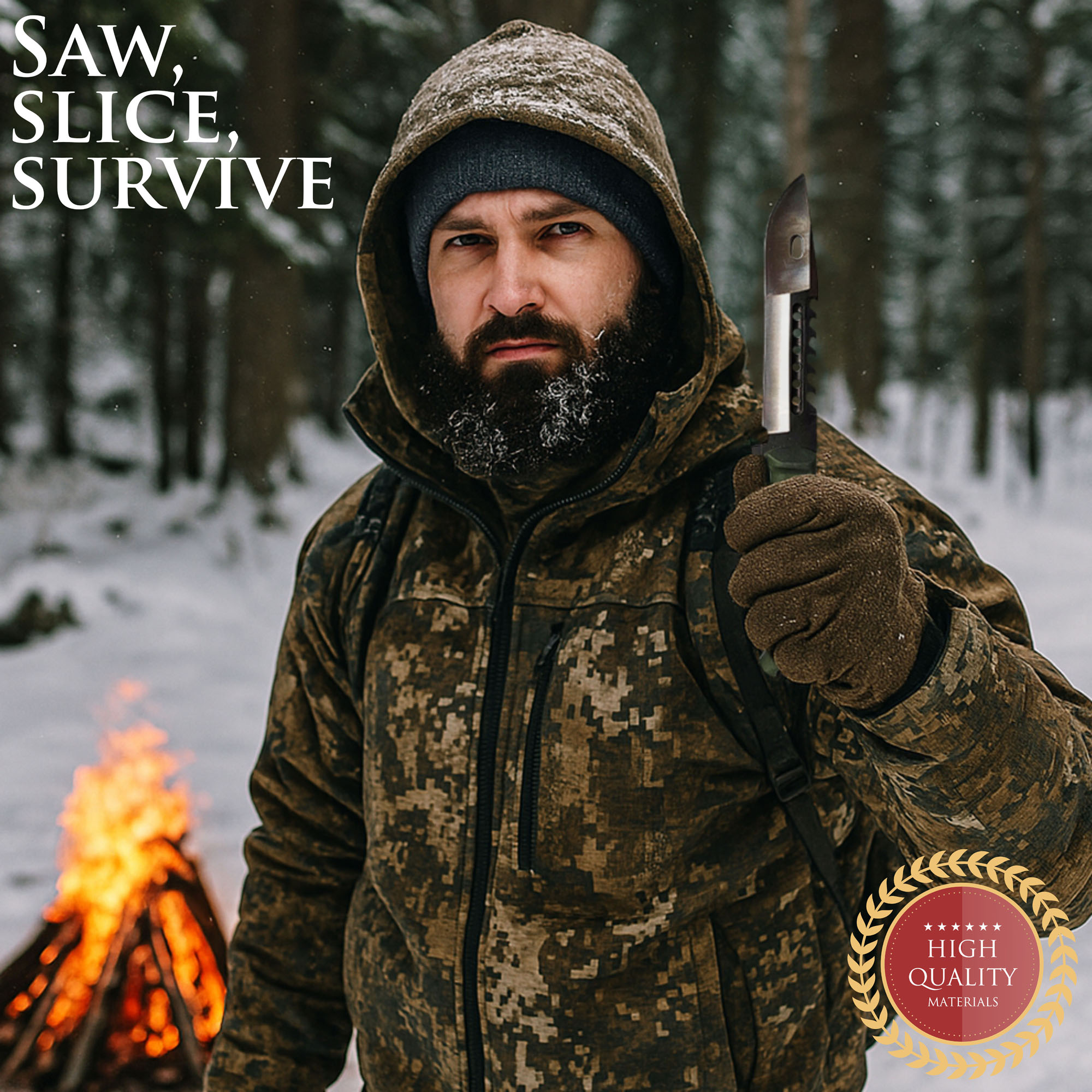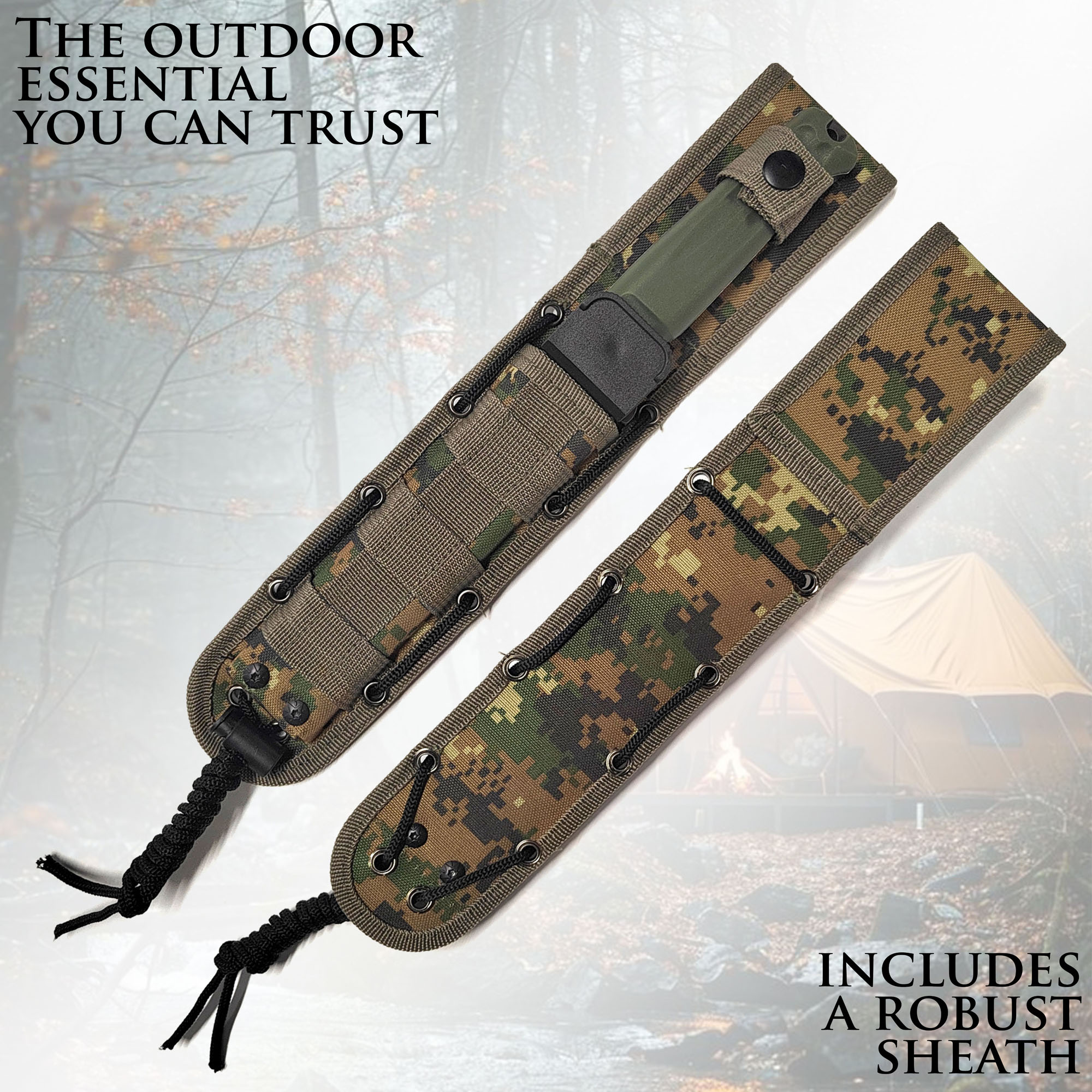 Jagdmesser mit Sägerücken und Scheide
