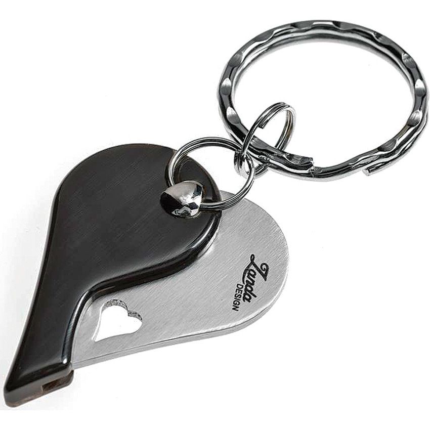 LionBeat herzförmiges Schlüsselanhänger-Klappmesser, integrierter Griff aus schwarzem Horn