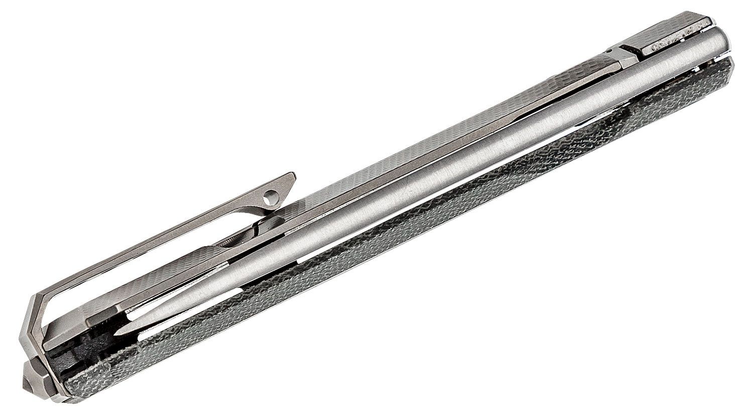 Myto, M390 Satin-Klinge, schwarzes Canvas-Micarta und Titan-Griff