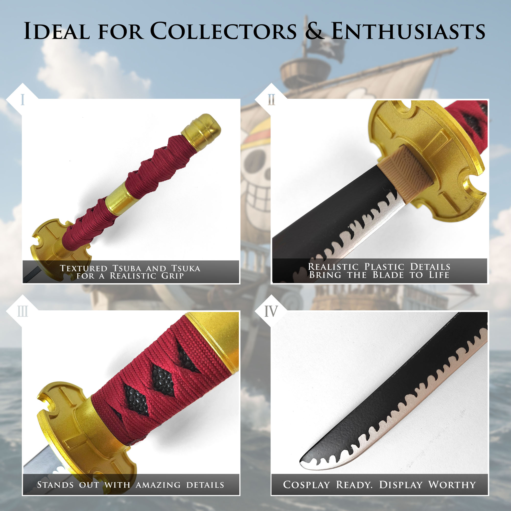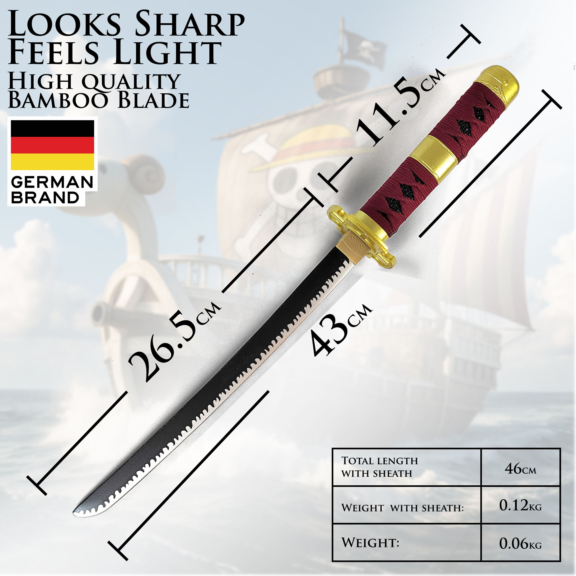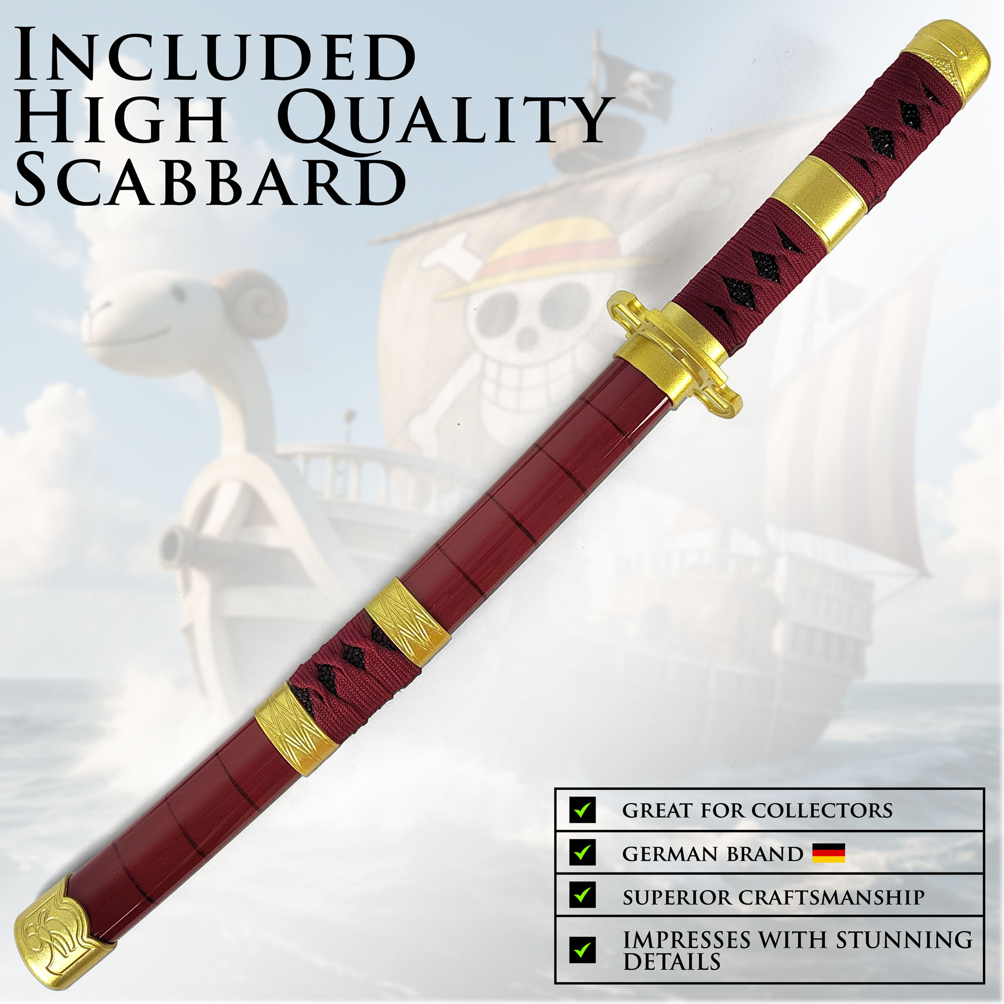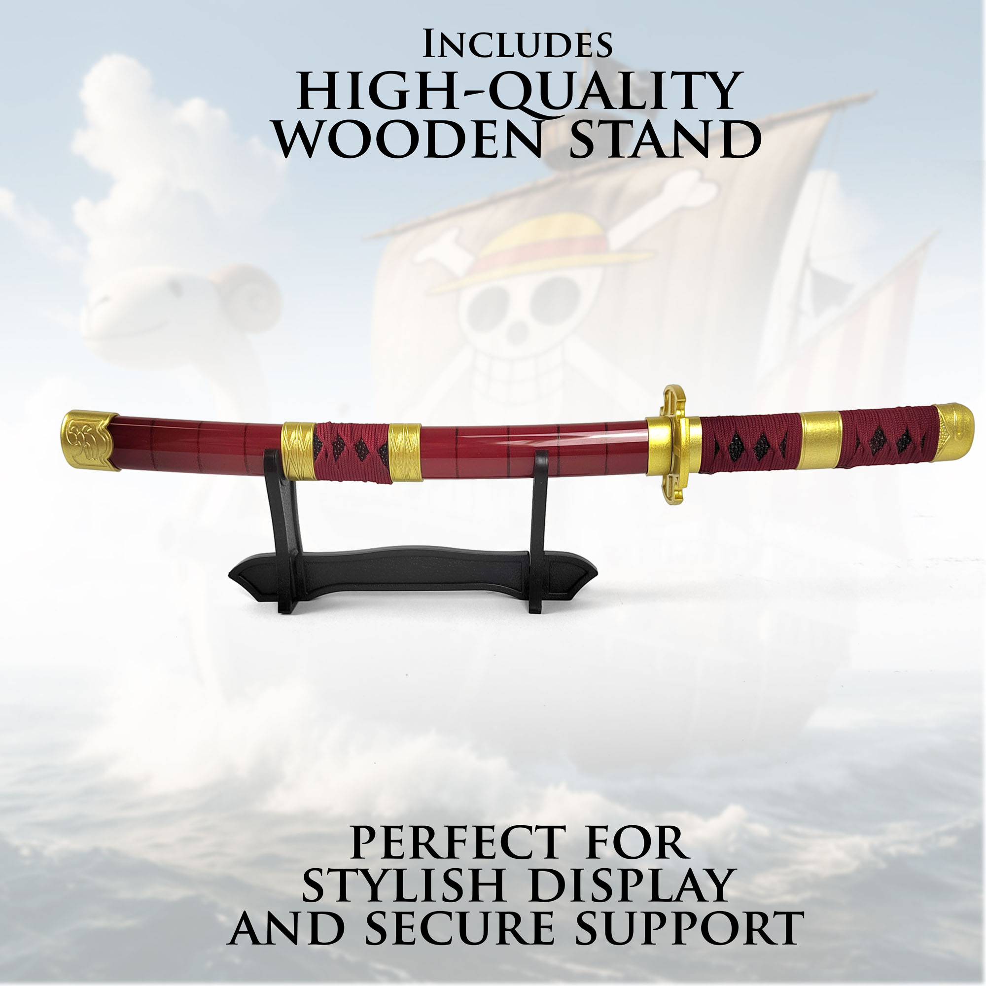 One Piece - Sandai Kitetsu Tanto aus Holz mit Scheide und Ständer