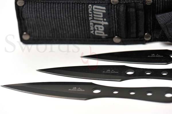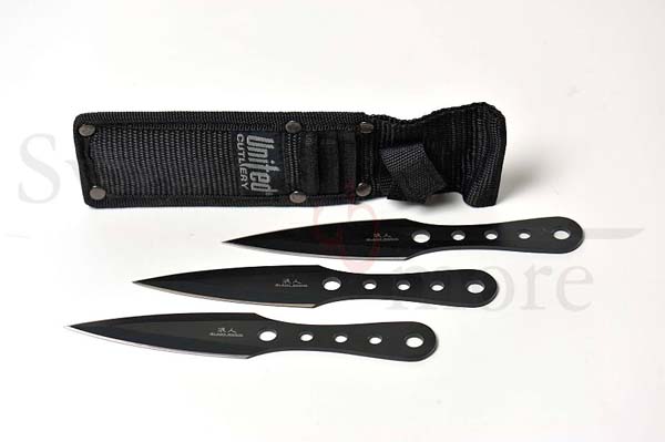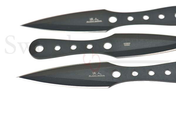 Schwarzes Ronin Triple Bolt Wurfmesser Set mit Nylonscheide