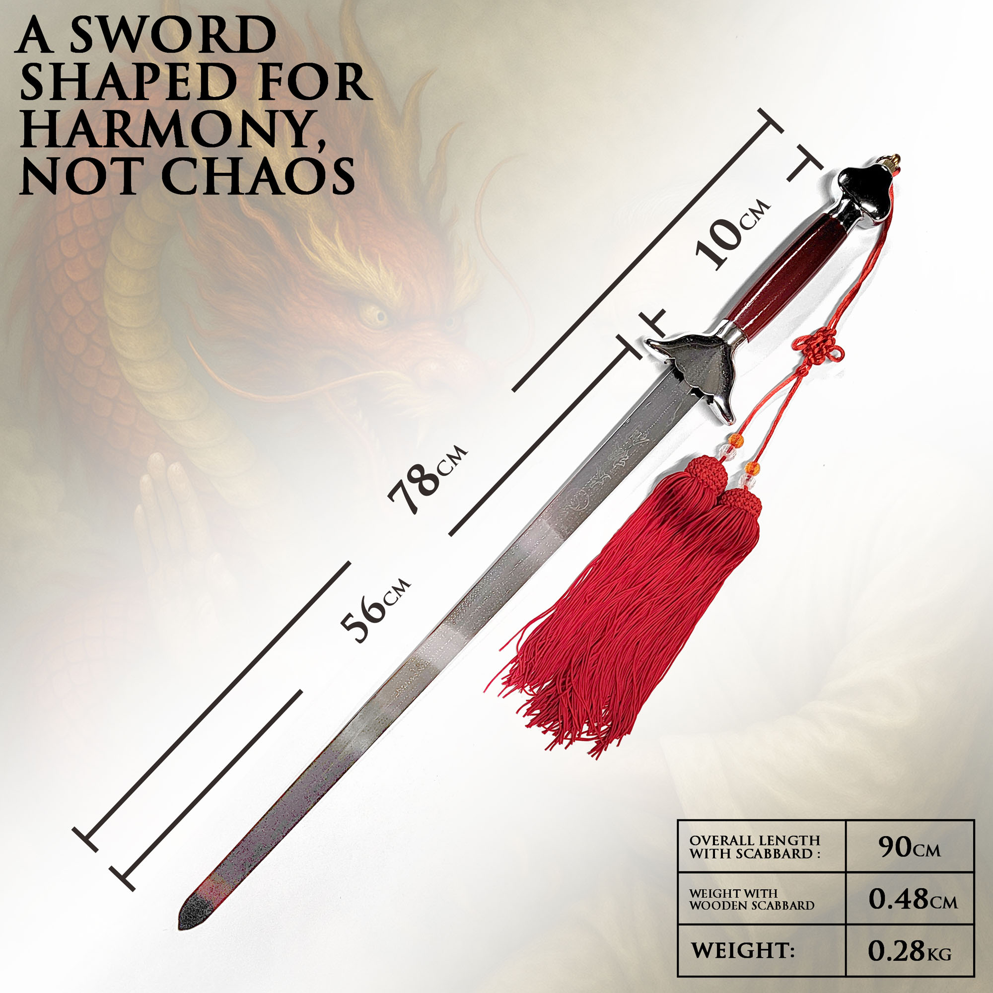 Tai Chi Schwert mit flexibler Klinge – 56 cm Klingenlänge inkl. Tasche