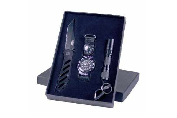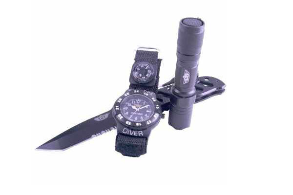 Uzi Special Forces Geschenk Set, Messer, Lampe und Uhr