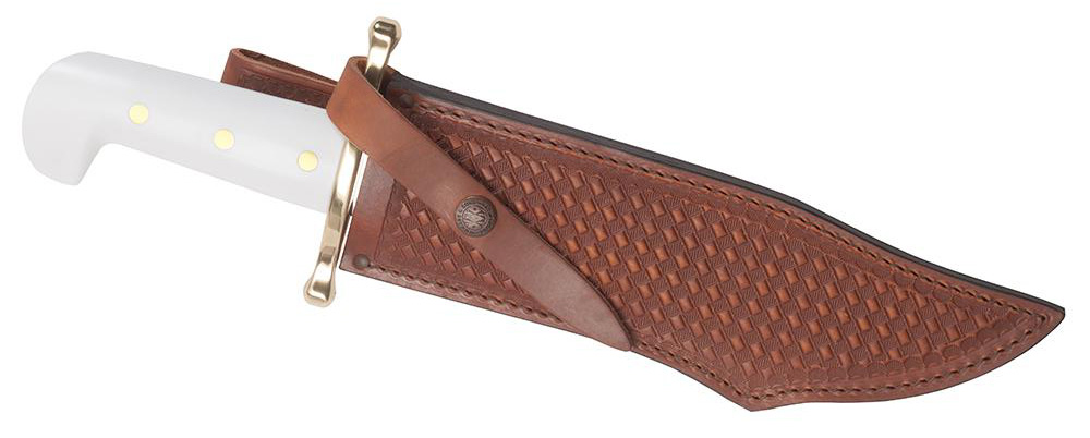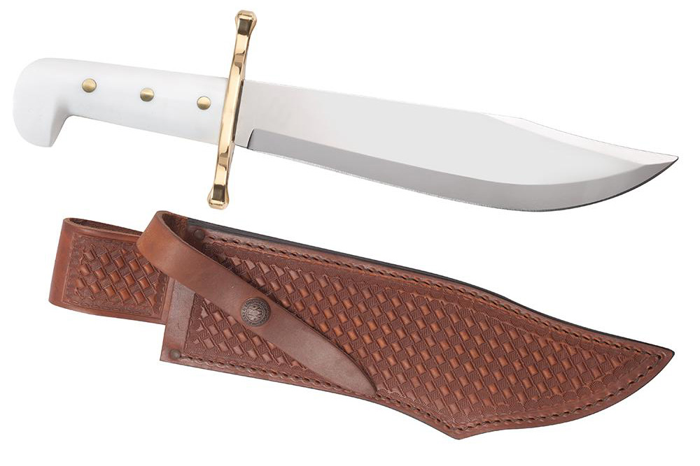 Weißes Bowie Messer mit Lederscheide